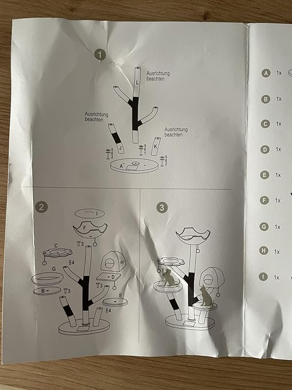 Der Kratzbaum wurde super-schnell geliefert, in weniger als 24 Stunden! Er war gut aufzubauen und ist sehr stabil. Die Qualität ist hochwertig und er wurde von den Katzen sofort angenommen. Wir sind sehr zufrieden!