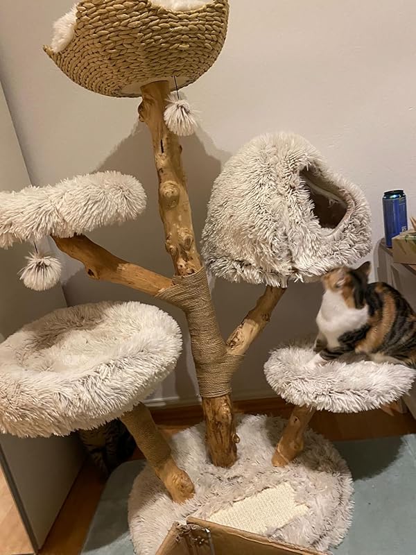 Positiv• Sehr stabilDas Naturholz wirkt robust und gibt dem ganzen Baum eine vernünftige Standfestigkeit. Meine Katze kann sich richtig austoben, ohne dass etwas wackelt.• Schneller AufbauDer Zusammenbau war unkompliziert und in ca. fünfzehn Minuten erledigt. Die Anleitung ist klar, die Teile passen sauber zusammen.• Hochwertige MaterialienDie Kombination aus Echtholz, Sisal und weichen Kissen macht einen wertigen Eindruck und sieht im Raum sehr schön aus.• BeschlagnahmtNoch bevor der Baum stand, hat meine Katze die Höhle und die Liegeflächen für sich beanspruchtVerbesserungspotential• Optional weichere Polsterung für die Höhle:Ein etwas dickeres Kissen in der Höhle könnte den Rückzugsort noch gemütlicher machen. Das wäre eine schöne Ergänzung als Zubehör.FazitEin stilvoller Kratzbaum, der durch echtes Naturholz, Stabilität und ein durchdachtes Design überzeugt. Der Aufbau geht schnell, der Baum ist langlebig und bietet viel Spiel und Komfort. Eine klare Empfehlung für alle, die etwas Hochwertiges für ihre Katze suchen.