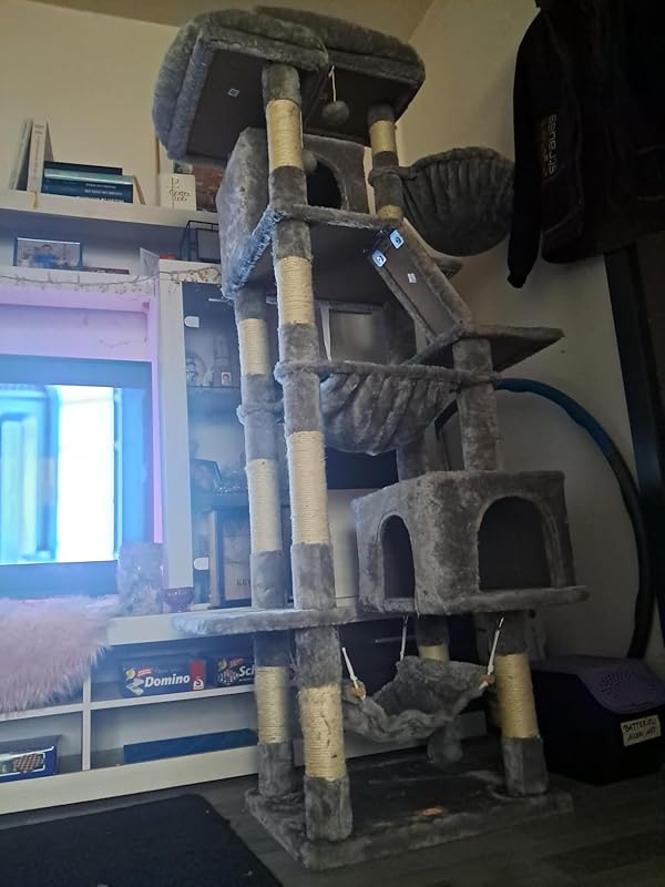 Einfach aufzubauen, ist schön weich, bietet viele Möglichkeiten zum Ausruhen und Spielen und unsere Katzen haben ihn sofort in Beschlag genommen.