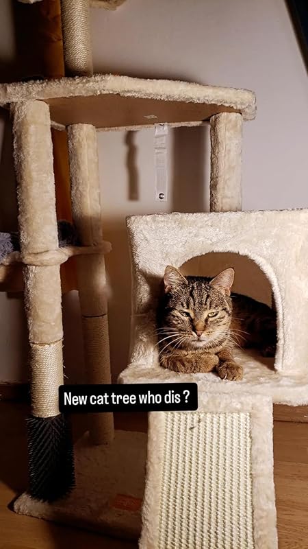 Ich bin enttäuscht 🙁Der alte Kratzbaum hatte ausgedient und es sollte ein ähnliches Modell her. Die Wahl fiel auf diesen. Vor allem war mir eine große Plattform oben wichtig, damit sich meine ausgewachsene EKH bequem hinlegen kann um ein Nickerchen zu halten und zum anderen einen guten Beobachtungsposten beziehen kann. Leider ist der Kratzbaum kleiner als ich erwartet habe und zudem sehr instabil. Die Bürste wird von meiner Katze gar nicht genutzt.Er kam zwar gut verpackt und unbeschädigt an und der Aufbau ging auch schnell und einfach.Nochmal werde ich ihn aber nicht kaufen und empfehlen kann ich ihn auch nicht.