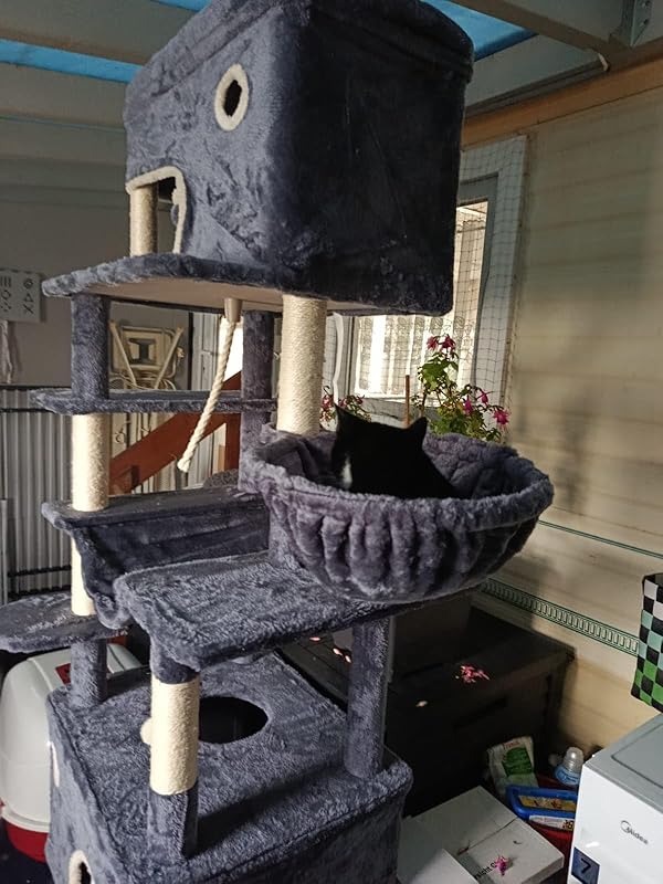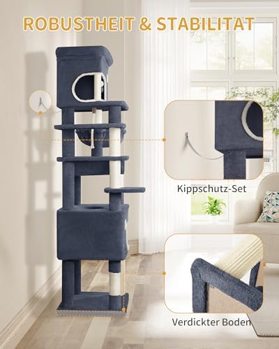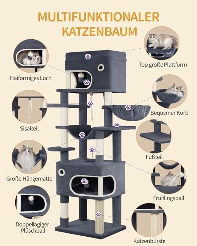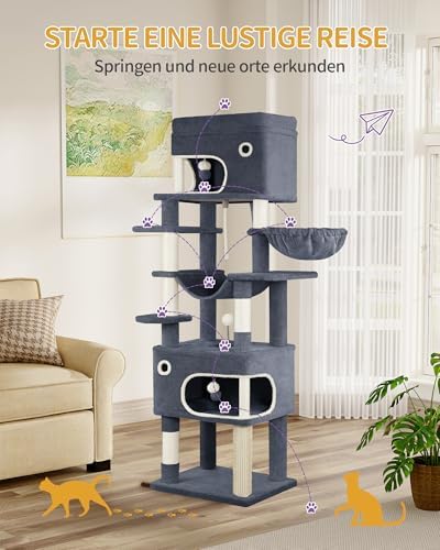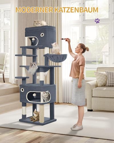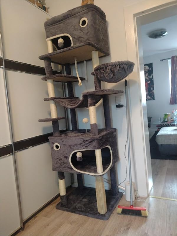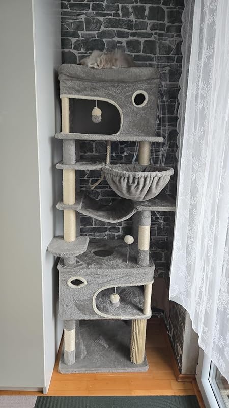 10 Rezensionen für Hzuaneri Kratzbaum, 178 cm Katzenbaum mit großer Plattform, 2 Höhlen, 7 Kratzsäulen, Pompons, Liegemulden, Hängematte, Geeignet für alle Katzenrassen, Dunkelgrau MS17818SG Amazon.de: Haustier