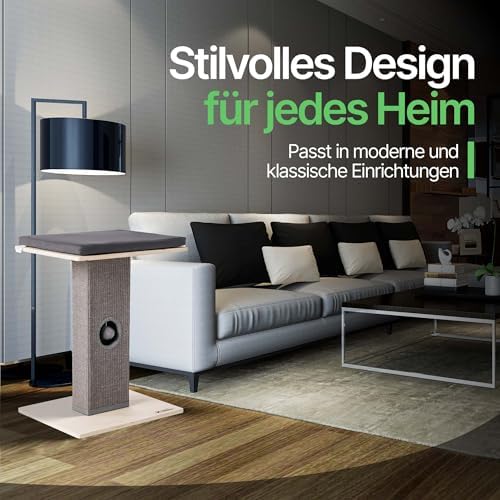 Perfekter Kratzbaum – Robust, durchdacht und ein Highlight für unsere Katze! Passt optisch, durch minimalistisches Aussehen, zu dem sehr gut zu unserem Haushalt.Die Qualität ist hervorragend – das Material fühlt sich robust und langlebig an.Besonders beeindruckt hat mich das integrierte Spielzeug in der Mitte, das für unsere Katze zu einem echten Highlight geworden ist. Sie spielt stundenlang damit und liebt es.Die Konstruktion ist stabil, sodass der Kratzbaum auch bei wildem Spielen nicht wackelt. Die Montage war unkompliziert, die Anleitung klar verständlich