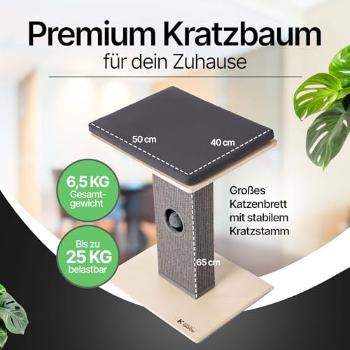 Toller Katzenkratzbaum!Ich bin absolut begeistert von diesem Kratzbaum. Er ist stabil und hochwertig verarbeitet. Besonders gefällt mir die große Liegefläche. Diese ist mit einem abnehmbaren und waschbaren Stoffbezug ausgestattet.Mein Kater liebt es, sich oben hinzulegen und die Aussicht zu genießen. Der Kratzbaum ist sehr robust und hält intensives Kratzen aus. Der Spielball in der Öffnung hat meinen etwas faulen Kater sogar schon zum Spielen animiert.Absolut empfehlenswert!