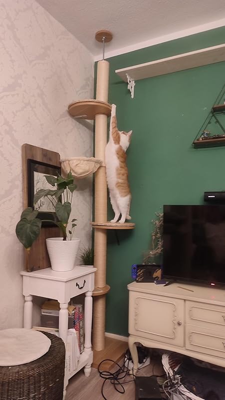 Perfekter Kratzbaum für meine ältere Katze, die nicht mehr allzu hoch klettern kann, aber dennoch auf Höhe des Fensters ihr Plätzchen haben möchte. Er lässt sich leicht zusammen bauen, sieht toll und wertig aus und nimmt nicht viel Platz weg. Meine Katze nutzt ihn sehr gerne