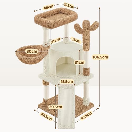 10 Rezensionen für Yaheetech Kratzbaum Kaktus Höhe 106,5 cm, Stabiler Katzenbaum Kletterbaum mit Aussichtsplattform Katzenhöhle Liegemulde Sisalstämme Beige & Braun Amazon.de: Haustier